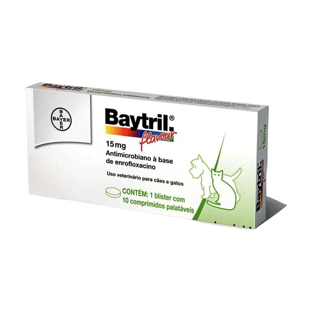 Baytril é o antibiótico indicado para infecções de cães e gatos. Use Baytril para o tratamento de infecções respiratórias, piodermites, otites, infecções entéricas, infecções geniturinárias e infecções no pós-operatório. Seguro para cães de raças pequenas e médias a partir de 8 meses e para raças grandes, a partir de 18 meses. Seguro para gatos a partir de 8 semanas de idade. Seguro para cães com mais de 8 meses e gatos com mais de 8 semanas, Baytril® é um antibiótico palatável, seguro e de rápida absorção.
