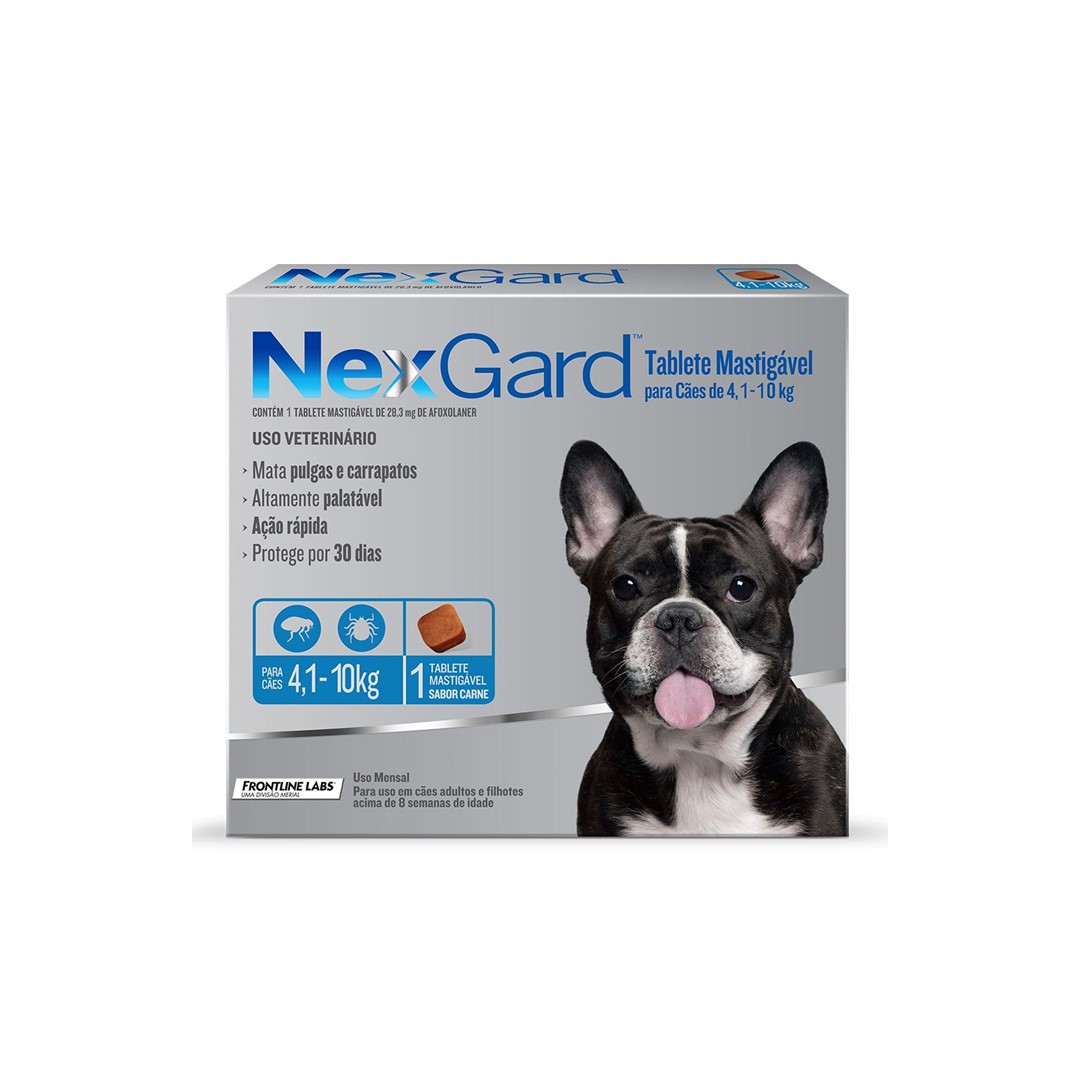 Os cães adoram os tabletes mastigáveis de NexGard sabor carne - em testes de preferência, até 13 vezes mais cães os preferem em comparação a outros produtos semelhantes. Faça do NexGard seu agrado mensal e você terá a garantia de proteção contra pulgas e carrapatos.
