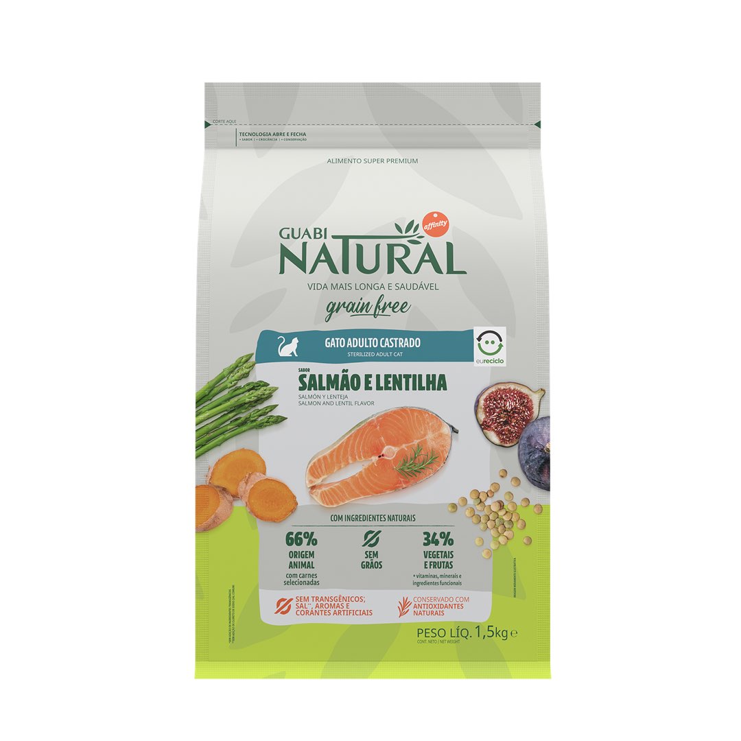 RAÇÃO GUABI NATURAL GRAIN FREE GATO ADULTO CASTRADO SALMÃO E LENTILHA