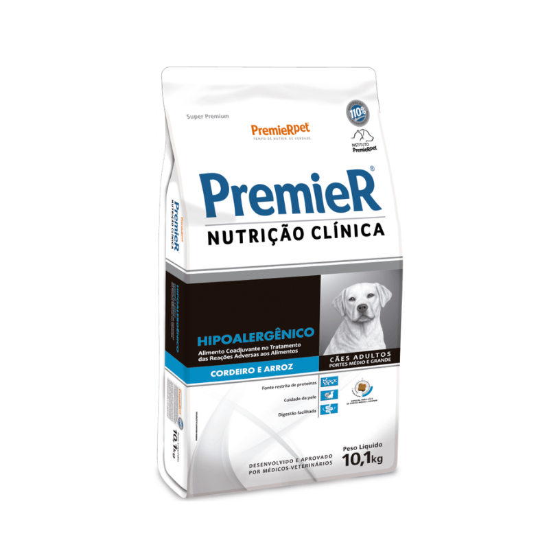 RAÇÃO PREMIER NUTRIÇÃO CLÍNICA HIPOALERGÊNICO PARA CÃES ADULTOS PORTES MÉDIO E GRANDE PROTEÍNA HIDROLISADA CORDEIRO 10,1